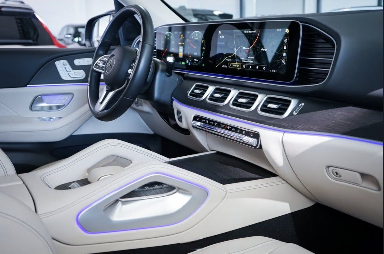 PÅ VEJ IND. Leasing: Udbetaling kr. 70.000+moms Mdr. ydelse kr. 5.822+moms Løbetid 12 mdr. Restværdi kr. 385.000+moms ex afgift. AMG Line. • Airmatic Agility-pakke • Anhængertræk (svingbart kuglehoved) 3.500 KG • Bremsesystem med store bremseskiver (højtydende bremser) • Tyverisikring-pakke • Tyverialarm • Kabineovervågning • Afslæbningsbeskyttelse • Køreassistent-pakke • Udvendige spejle med aktiv blindvinkelassistent • Adaptiv fartpilot (Distronic Plus med Stop&Go) • Aktiv hastighedsassistent • Aktiv bremseassistent • Aktiv sporholderassistent • Trafikskiltegenkendelse • PRE-SAFE sikkerhedssystem • Bagagerumsadskillelse (net) • Trådløs opladning til smartphone • Indtræk: træ (eg) • Keyless-Go pakke (nøglefri start og låsning) • Ladekabel til offentlige ladestandere • AMG letmetalfælge for/bag: 10x21 / 11x21 (multieget, himalayagrå) • Memory-pakke (elektrisk justerbare forsæder med hukommelse) • Metallakering • Panorama skydetag • Parkeringspakke med 360° kamera • Aktiv parkeringsassistent • 360° kamerasystem • Dæk-reparationssæt (Tirefit) • Mørktonede ruder bag • Sædeindtræk: læder • Burmester surround sound system Andet udstyr: Airbag på passagerside kan deaktiveres, Airbags fører- og passagerside, Akustisk omgivelseslyd (udvendig), Interiørpakke, Interiørpakke krom, Artico kunstlæder, ABS, Firehjulstræk, AC-ladekabel, El-justerbare og opvarmede sidespejle, Krompakke, DAB-radio, Tagræling i aluminium, AMG Line, AMG stylingpakke, Elmotor (hybrid), ESP, Trækkraftkontrol, Nedkørselsassistent, Adaptiv fjernlysassistent, Hastighedsassistent, Online tjenester & apps, Køretøjsovervågning, El-ruder for/bag, Velourmåtter, Bagagerumsafdækning, Automatgear 9G-Tronic, Elektrisk bagklap, LED baglygter, Plug-in hybrid diesel, Infotainment m. Remote & Charging Services, Isofix, 5-dørs, Klimaanlæg (Thermatic), Knæairbag, Widescreen cockpit, LTE kommunikationsmodul, Hovedairbag, Ladekabel til stikkontakt, El-lændestøtte, Mercedes nødopkaldssystem, Navigation (harddisk), Lang akselafstand, Dæktrykskontrol, Partikelfilter, Splitbagsæde, Euro 6, LED High Performance forlygter, Sideairbags, Udvidede navigationstjenester, Servolukning af døre, Sædevarme, Smartphone integration, Spejlpakke, El-klapbare spejle m. lys, Automatisk nedblændeligt spejl, Stemmestyring (MBUX), Ambientebelysning, Læderrat (Nappa), Multifunktionsrat, LED kørelys, Komfortundervogn, USB-tilslutninger, Centrallås m. fjernbetjening.